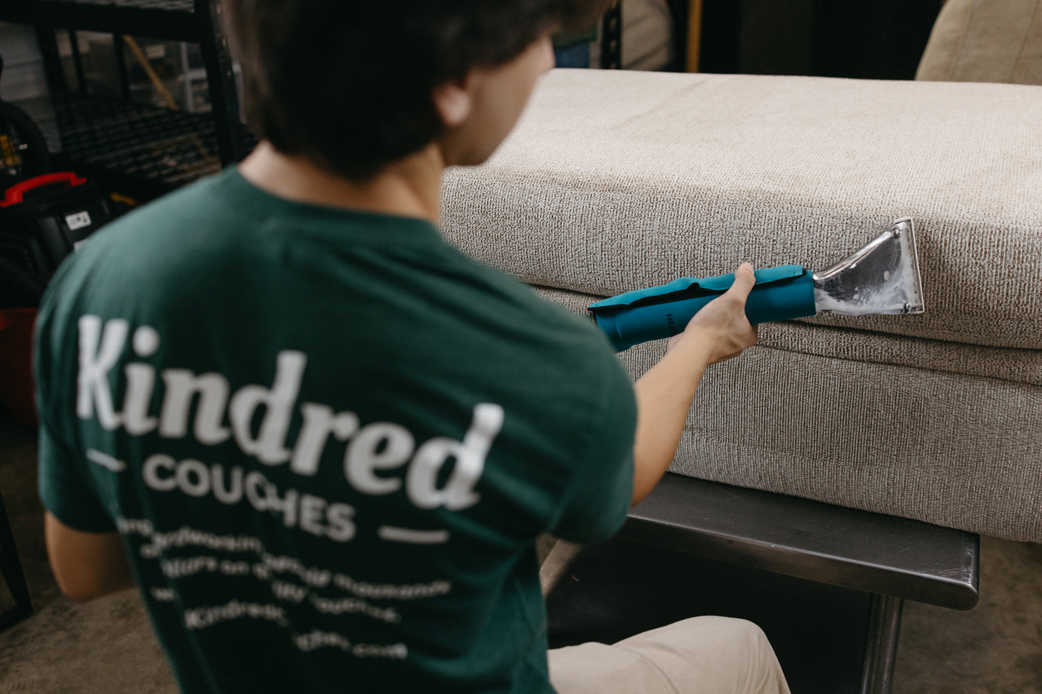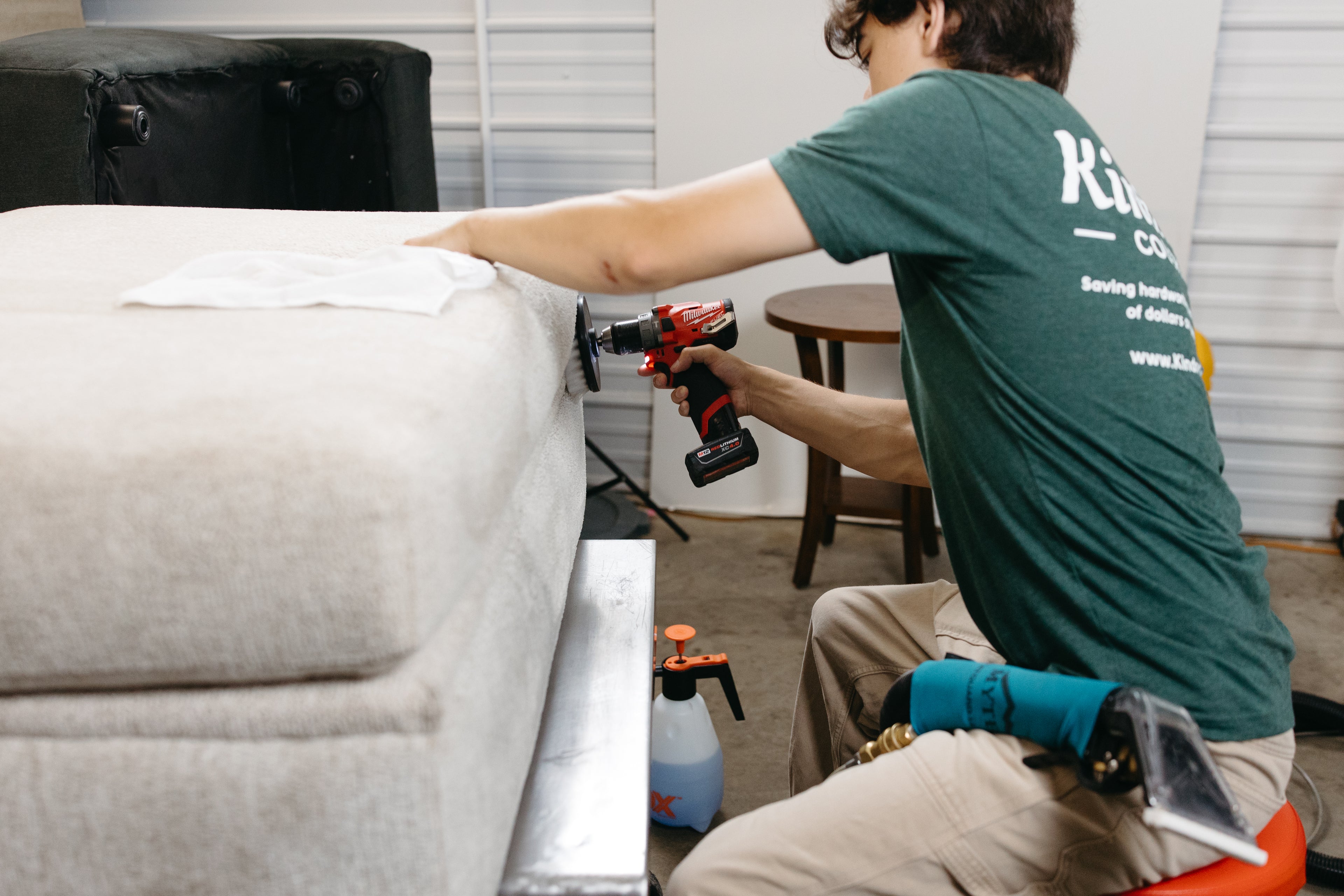 This is a mandatory step that gets done on all pieces that come into our warehouse. No matter the age, condition, etc. Vacuuming each couch ensures that we have a clean slate to begin the next steps.