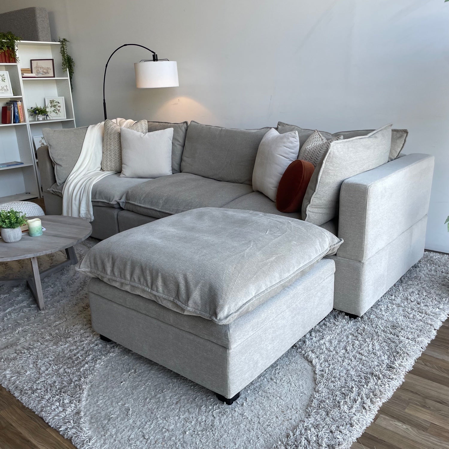 Albany Park Kova Modular 4 Pc Sectional in Oatmeal Performance Chenille w/Storage Ottoman (Pillow Top Cushions)