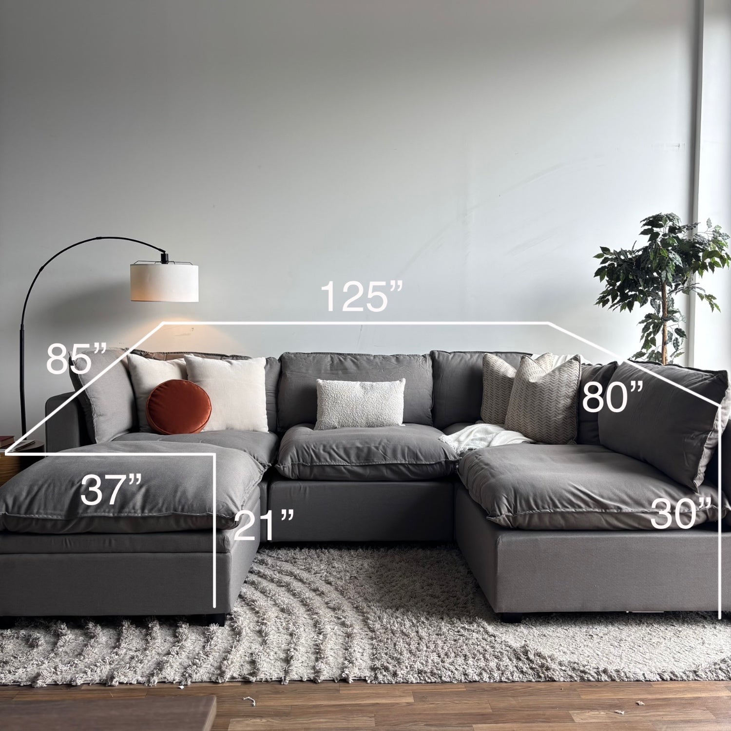 Albany Park Kova Modular 5 Pc Pillowtop Sectional in Clay Performance Linen w/ Storage Ottoman