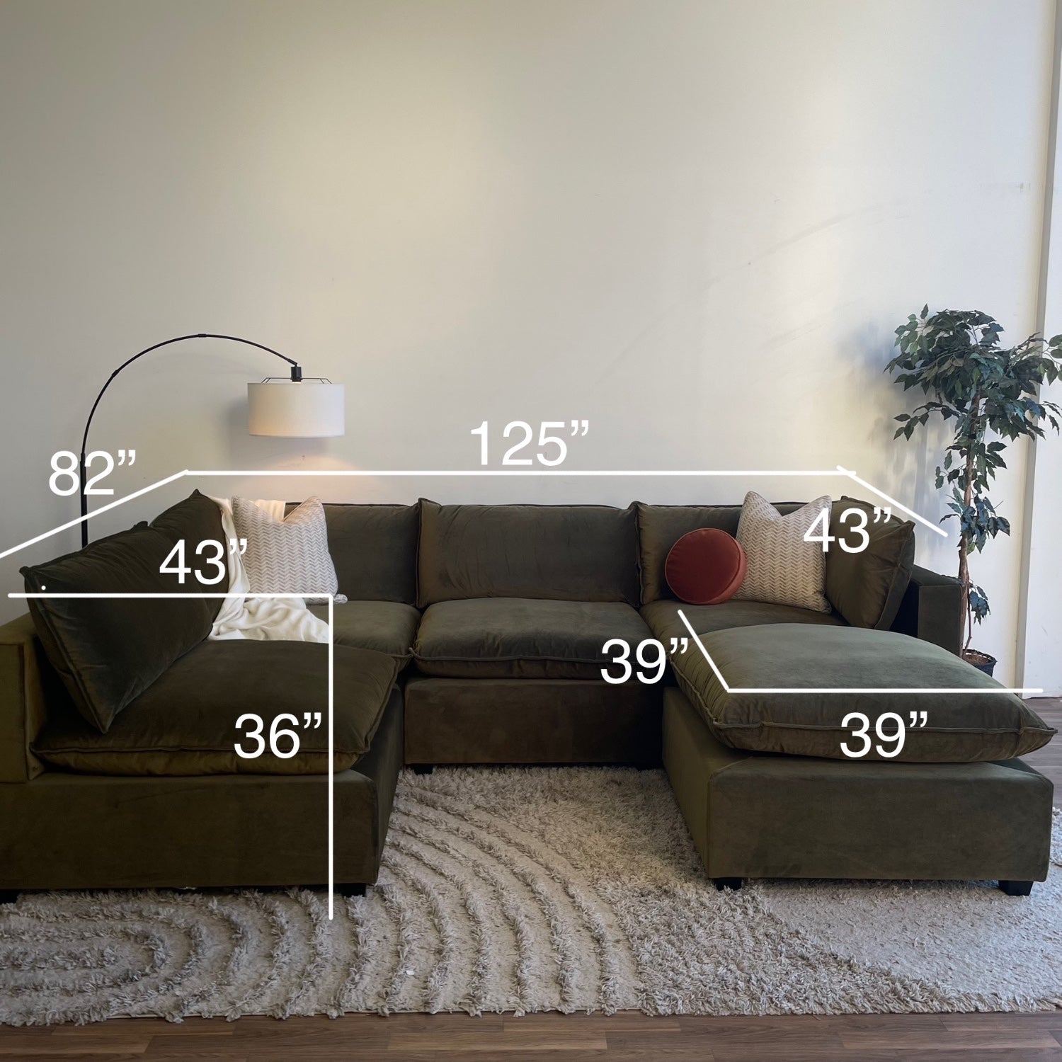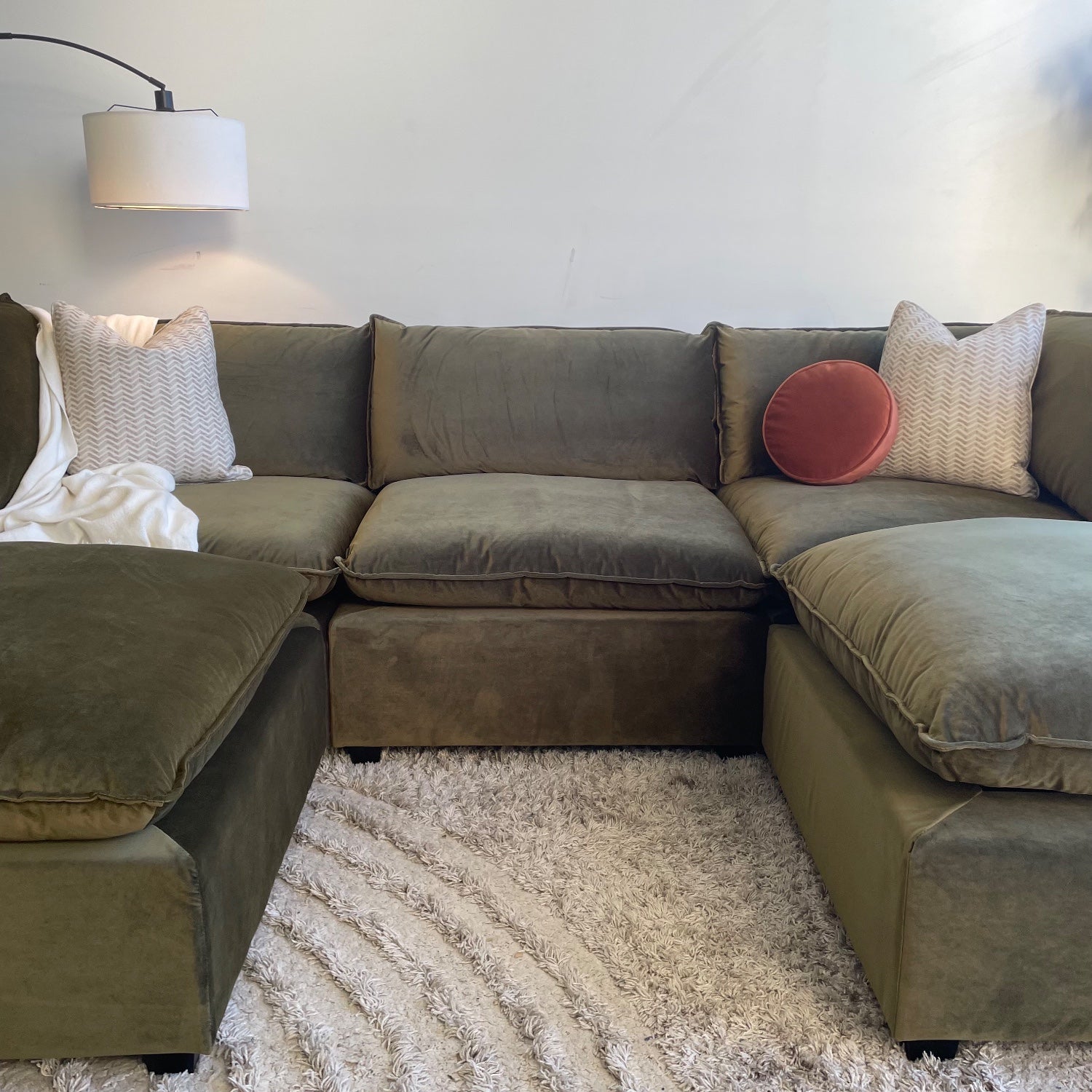 Bellamia Luna L-Shape + Ottoman in Green Performance Velvet