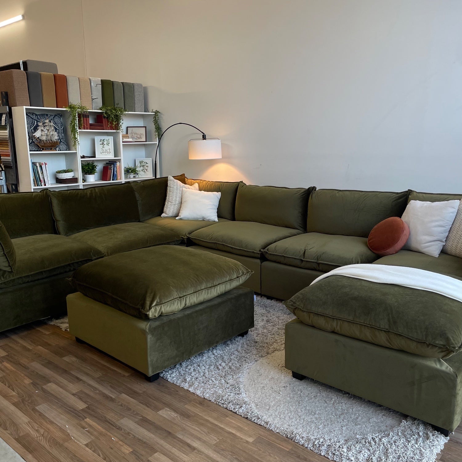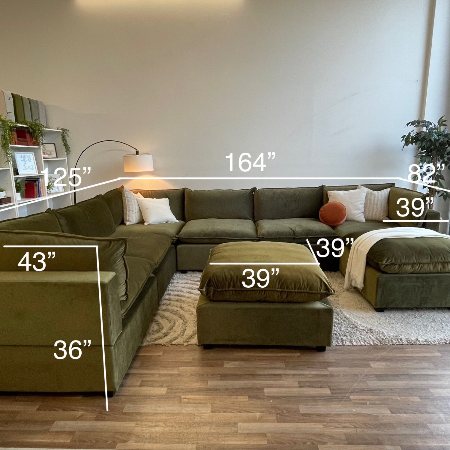Bellamia Luna Grand Corner + Ottoman in Green Performance Chenille