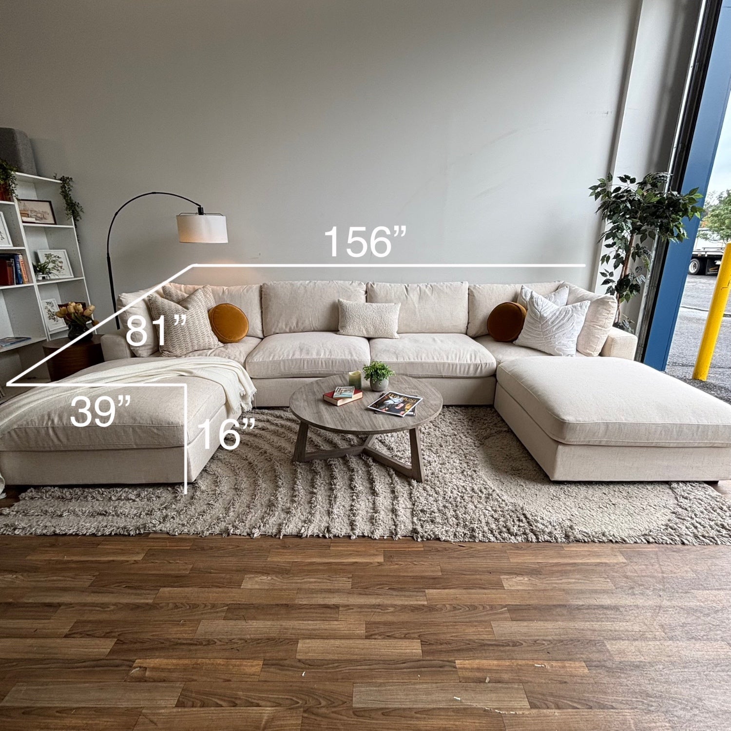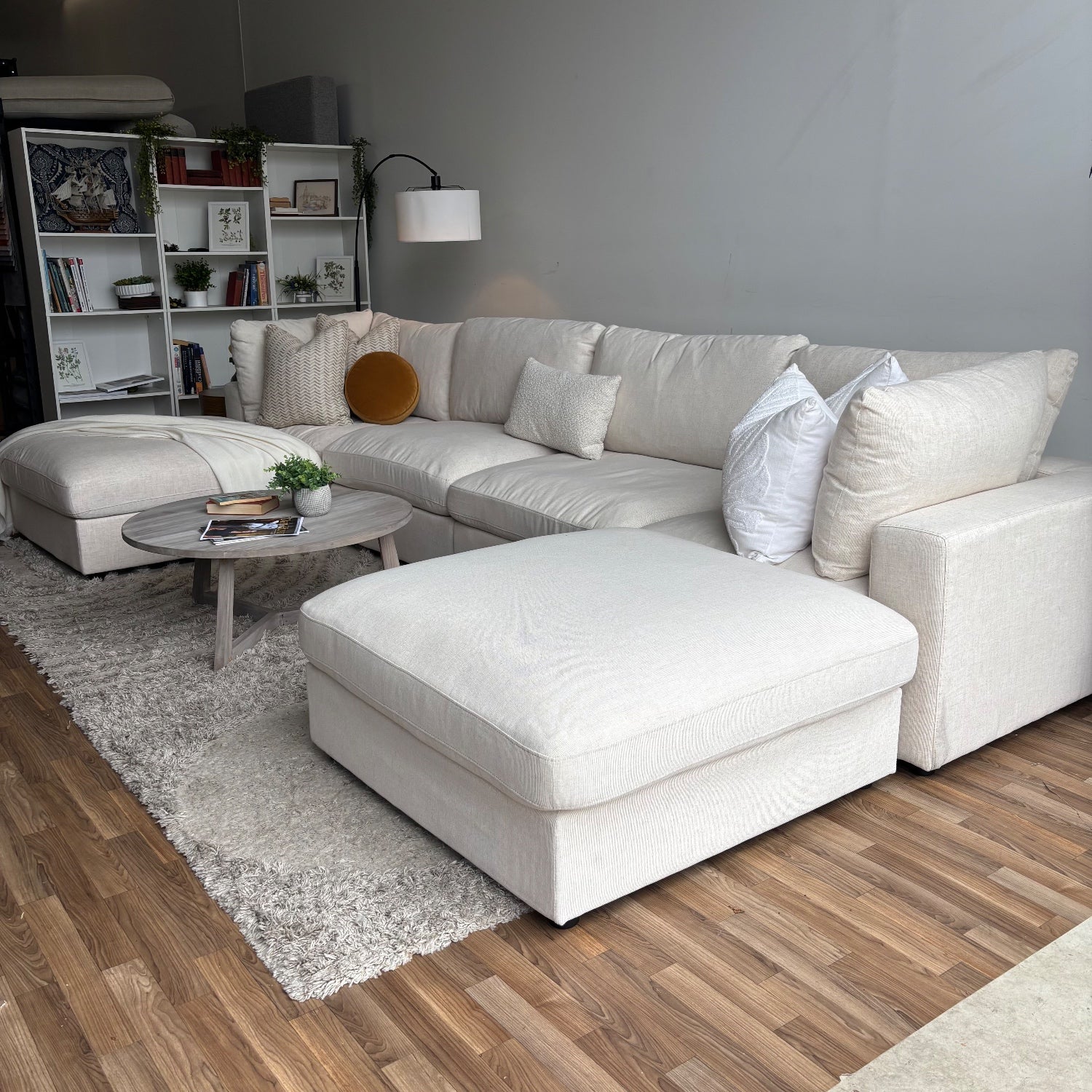 Serene Double Chaise/Ottoman Sectional in Beige Linen