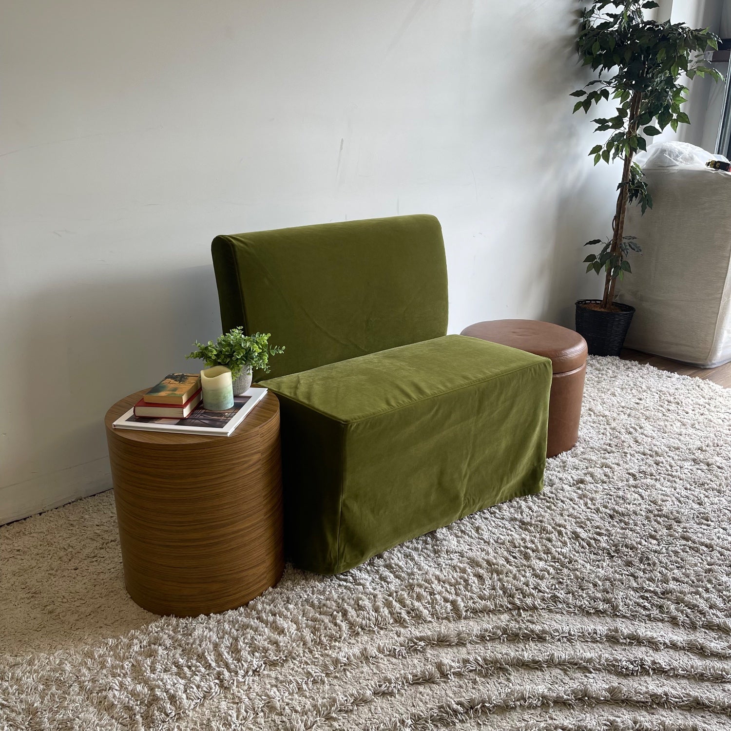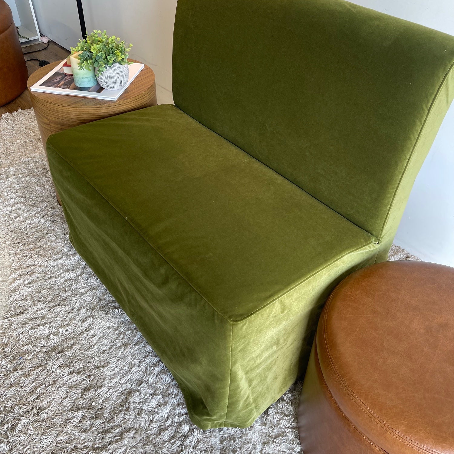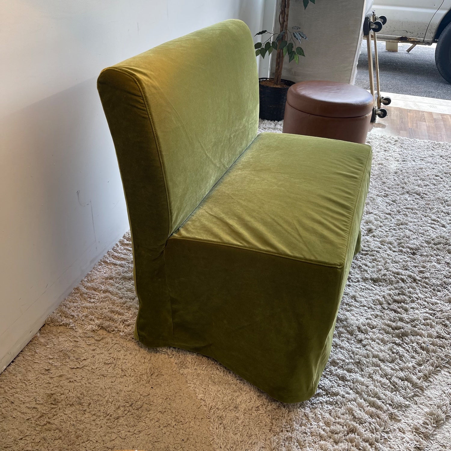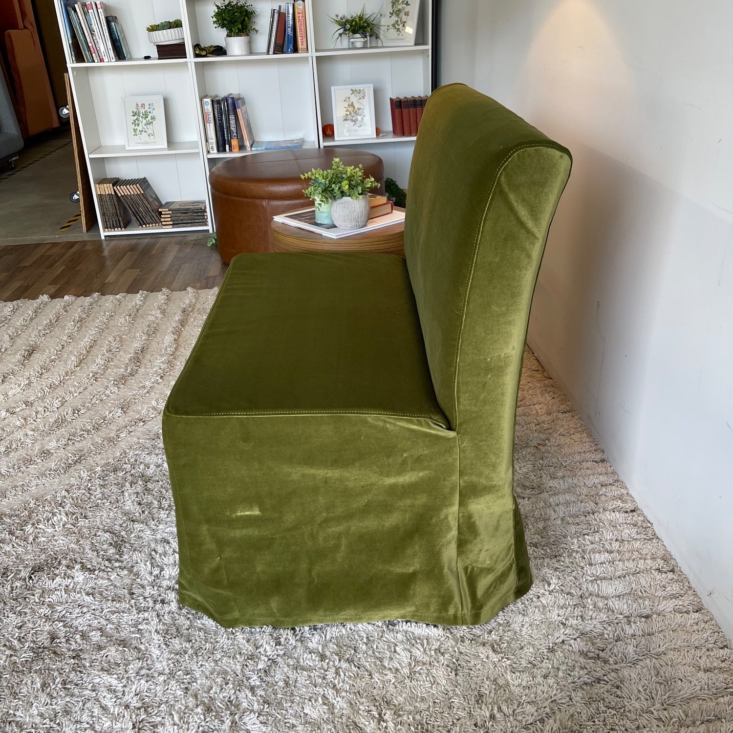 Interior Define Dorian Armless Slipcover Bench in Sage Performance Velvet