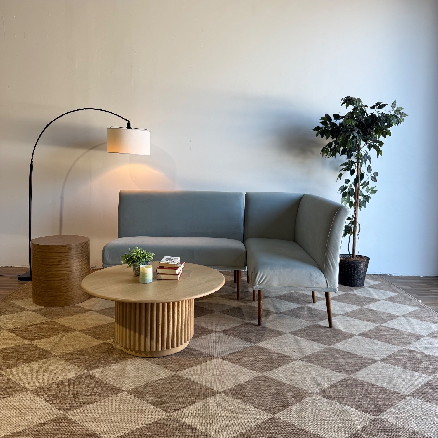 Interior Define Dorian Petite Right Banquette in Blue Performance Velvet