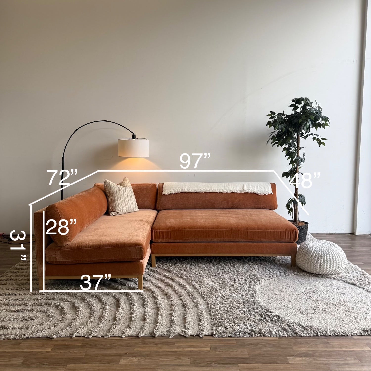 Interior Define Jasper Chaise 2-piece Sectional in Auburn Performance Vintage Velvet