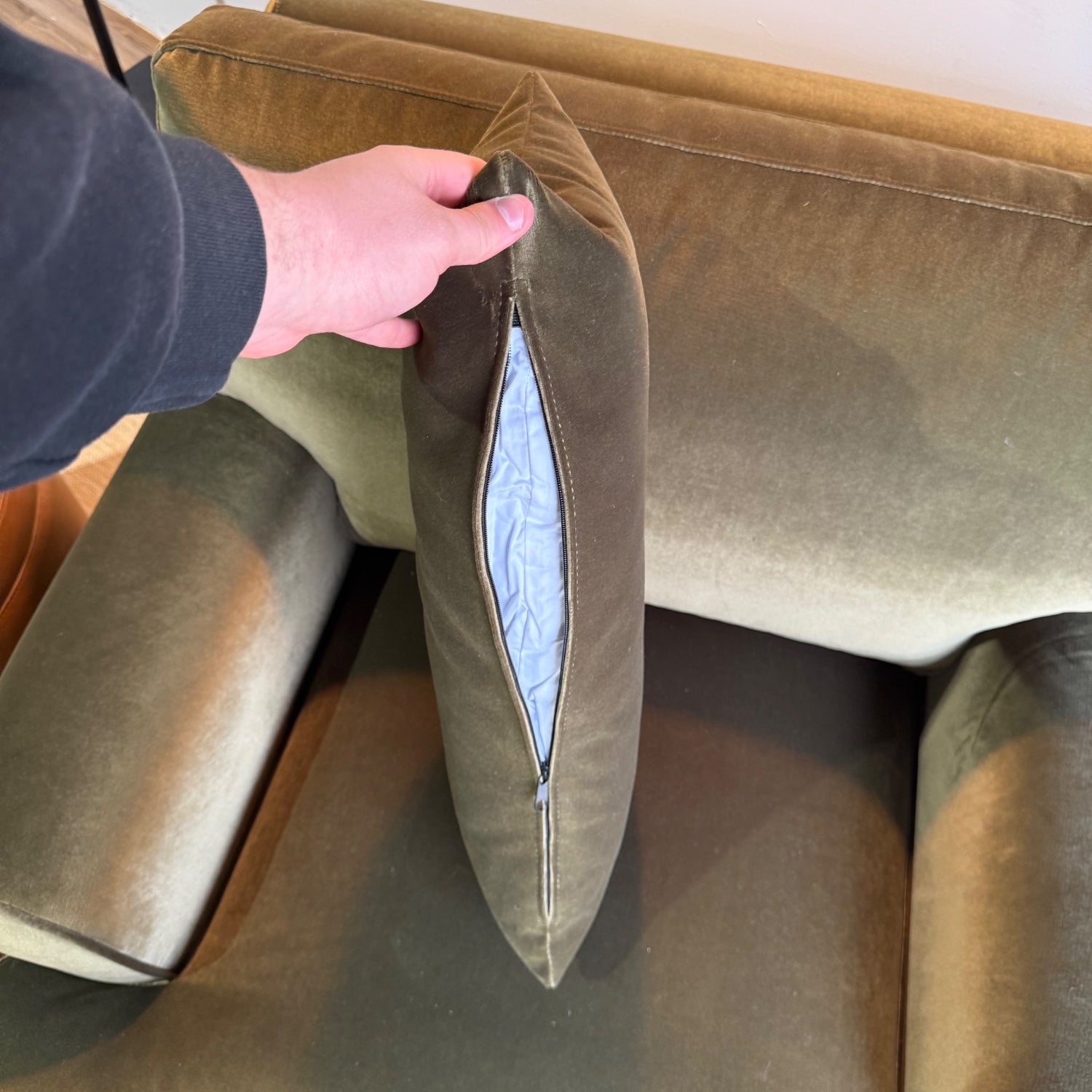 We do not offer returns on any products. However, we encourage you to schedule an appointment to see the couch in person beforehand.