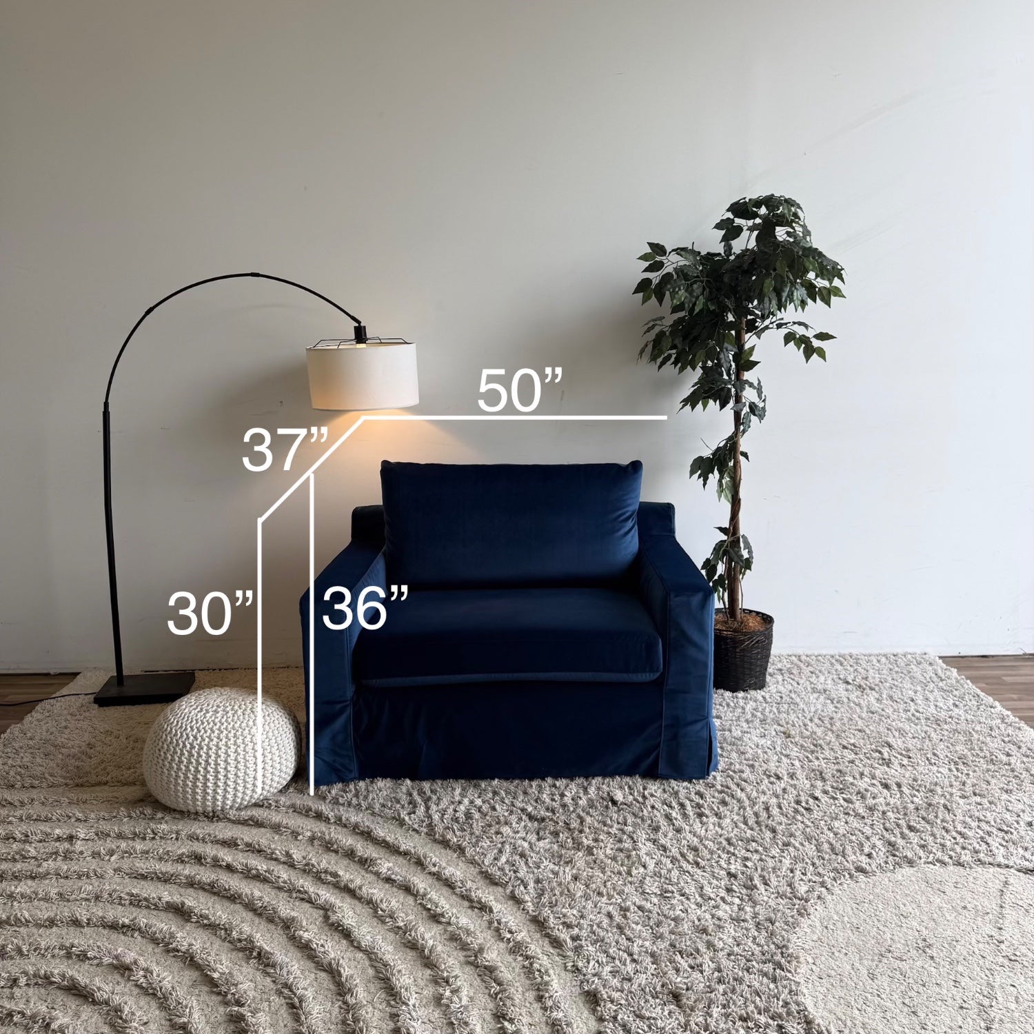 Interior Define Sloan Chair in Navy Blue Velvet w/slip cover
