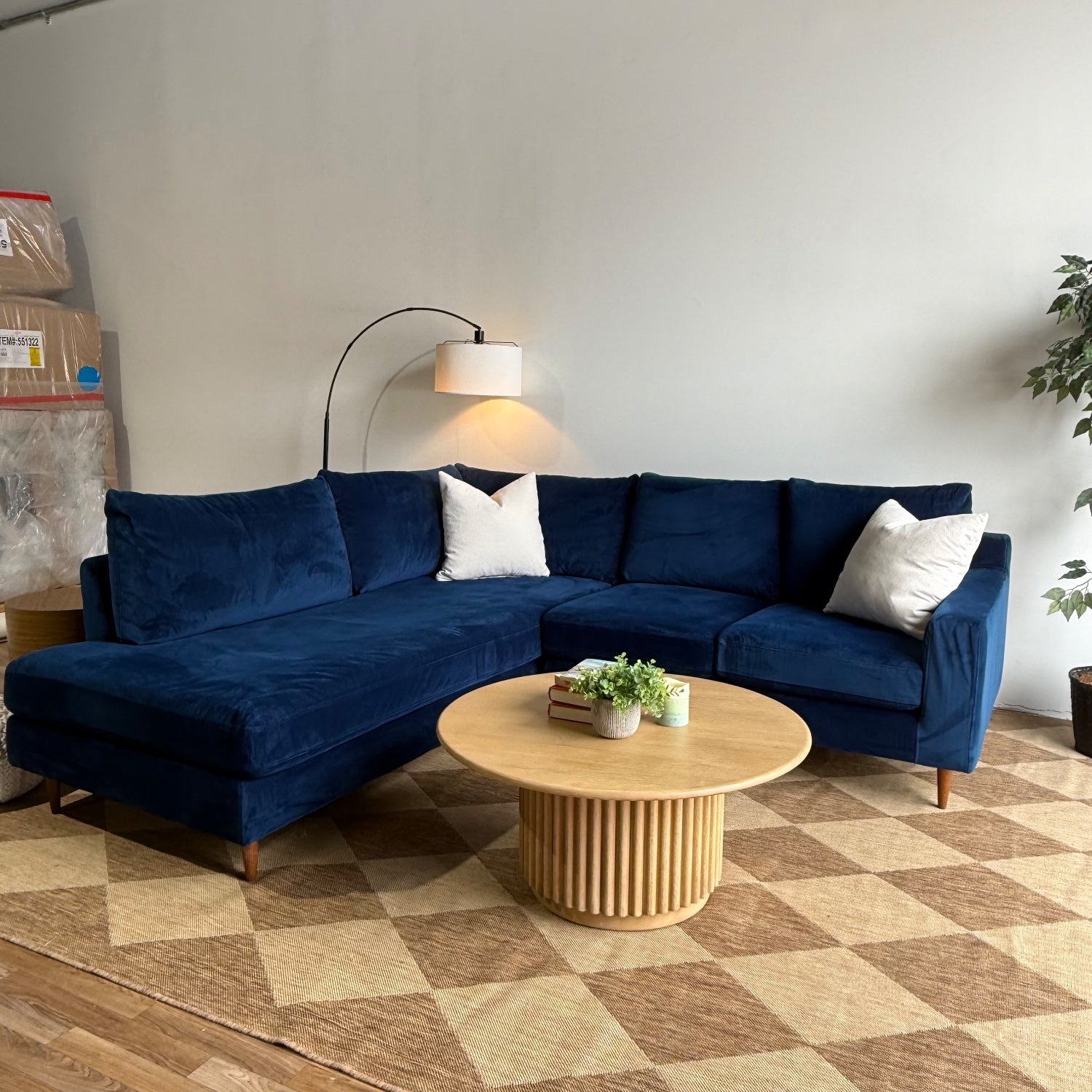 Interior Define Sloan Chaise Sectional in Blue Performance Velvet