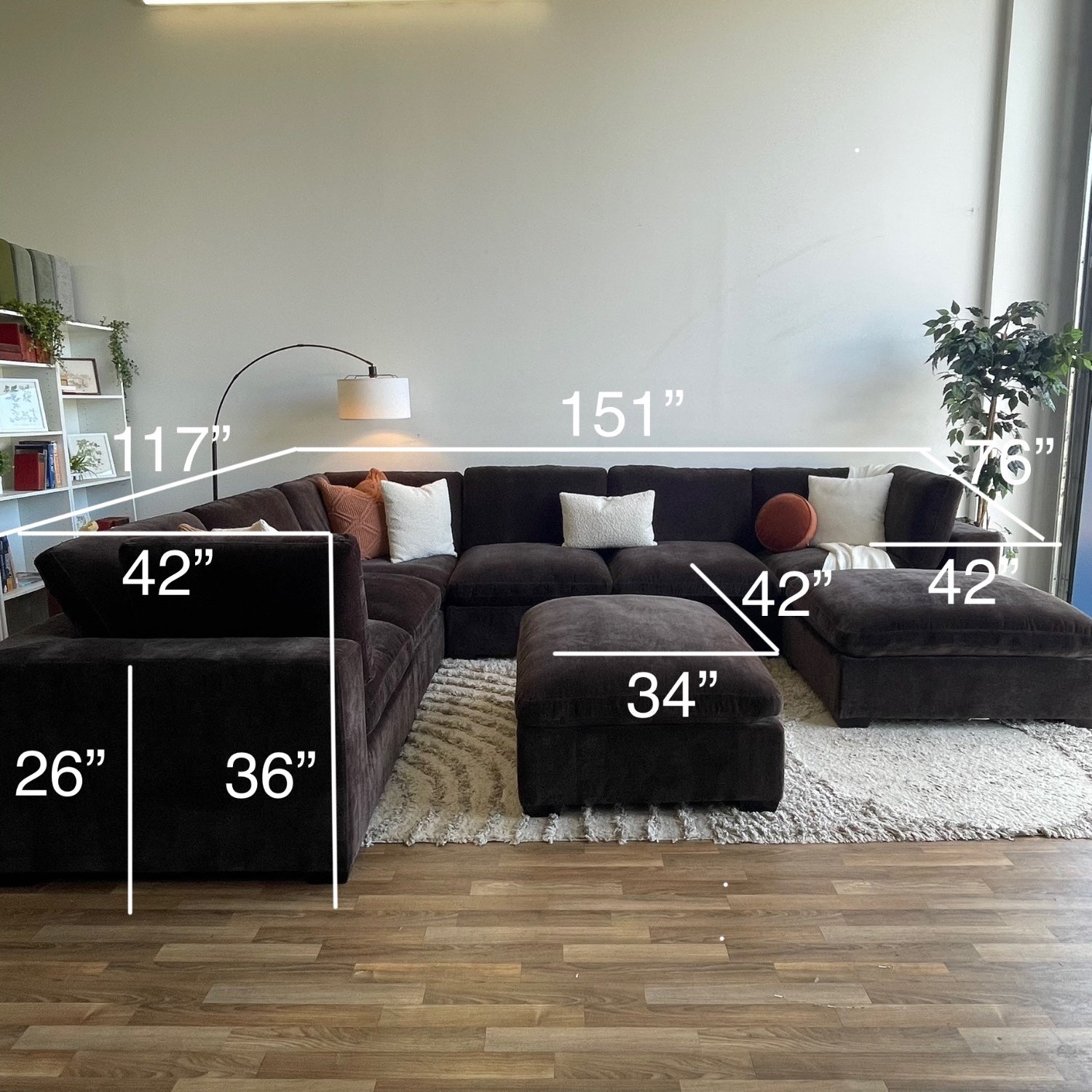 Lakeview Grand Corner + Ottoman in Chocolate Brown Low Pile Velvet