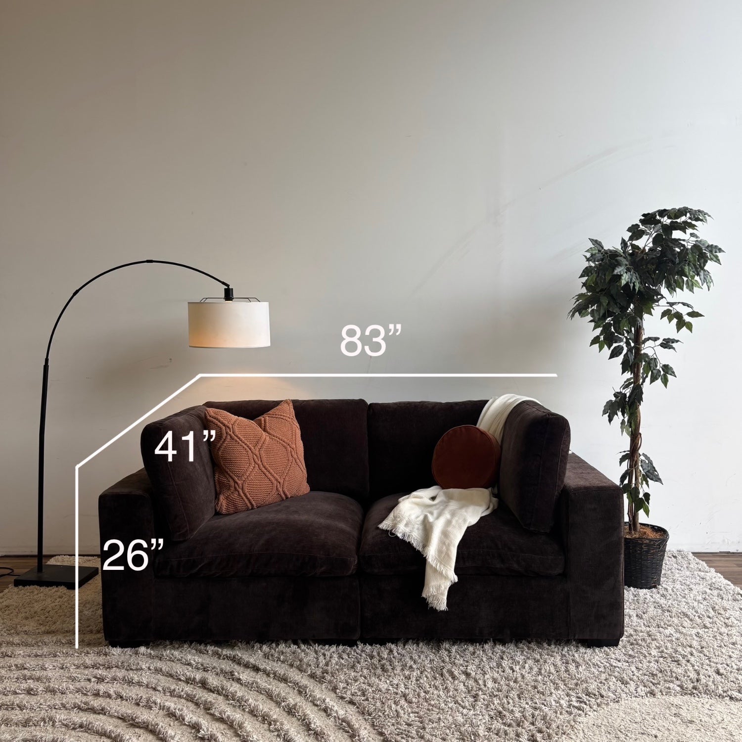 Lakeview Loveseat in Chocolate Brown Low Pile Velvet