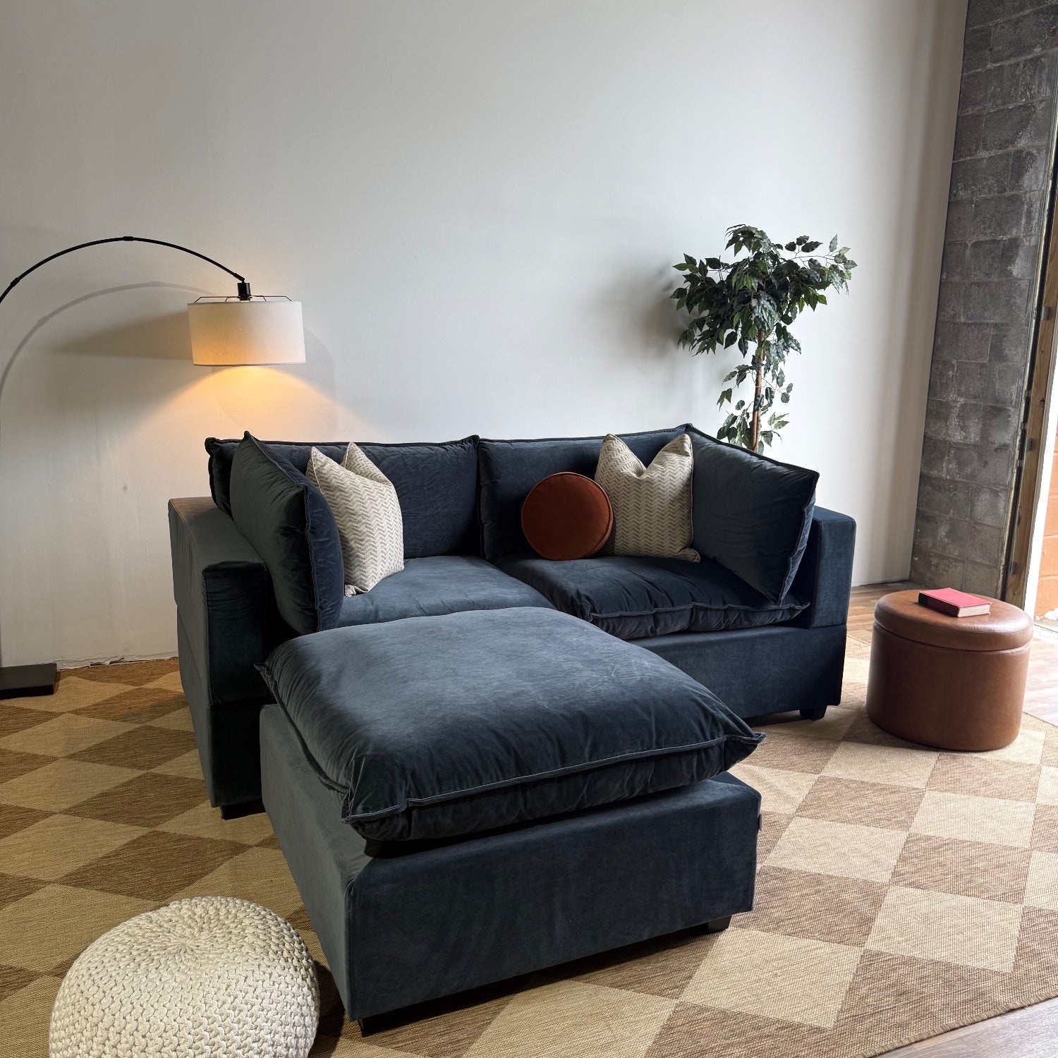 Bellamia Luna Loveseat + Ottoman in Dusty Blue Performance Velvet