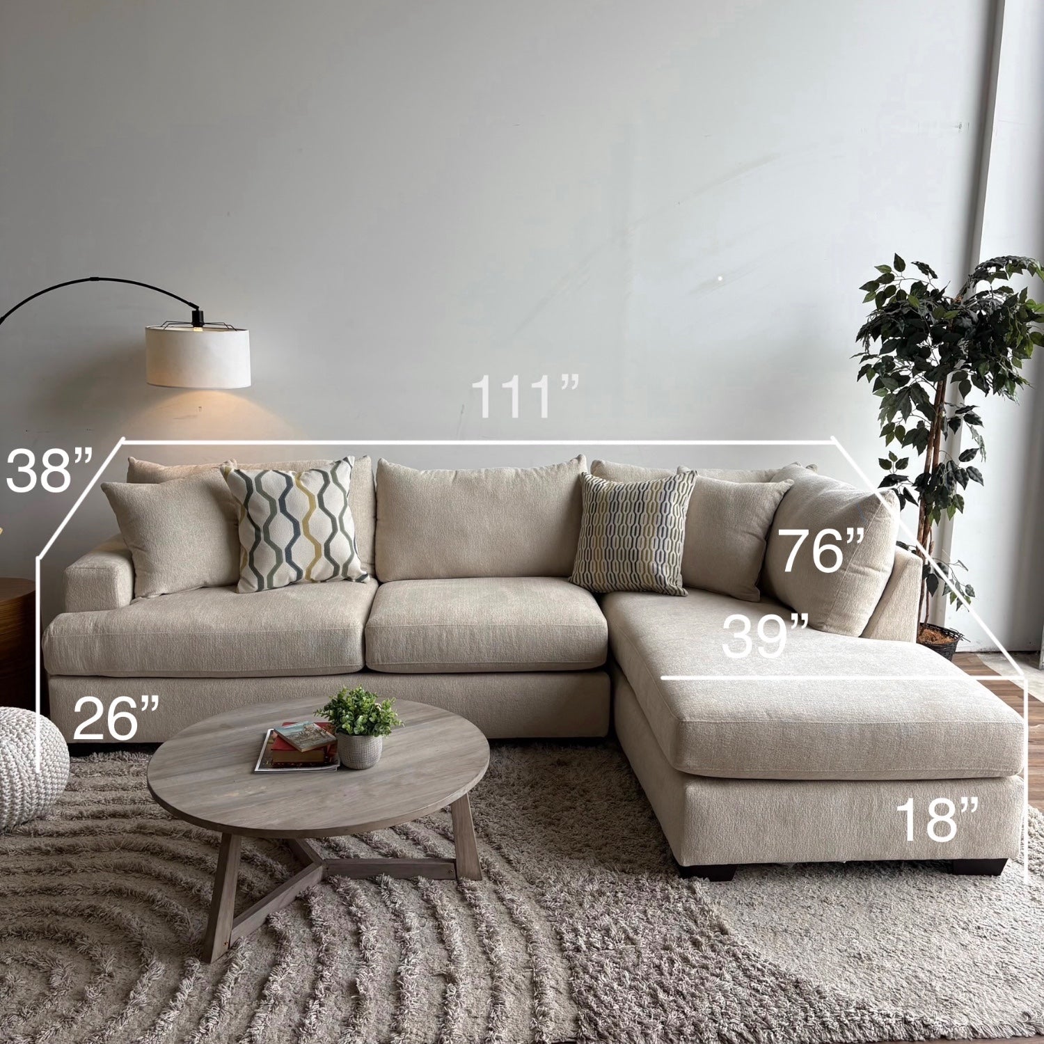 Marin 2 Piece L-Shape Sectional in Cream Chenille
