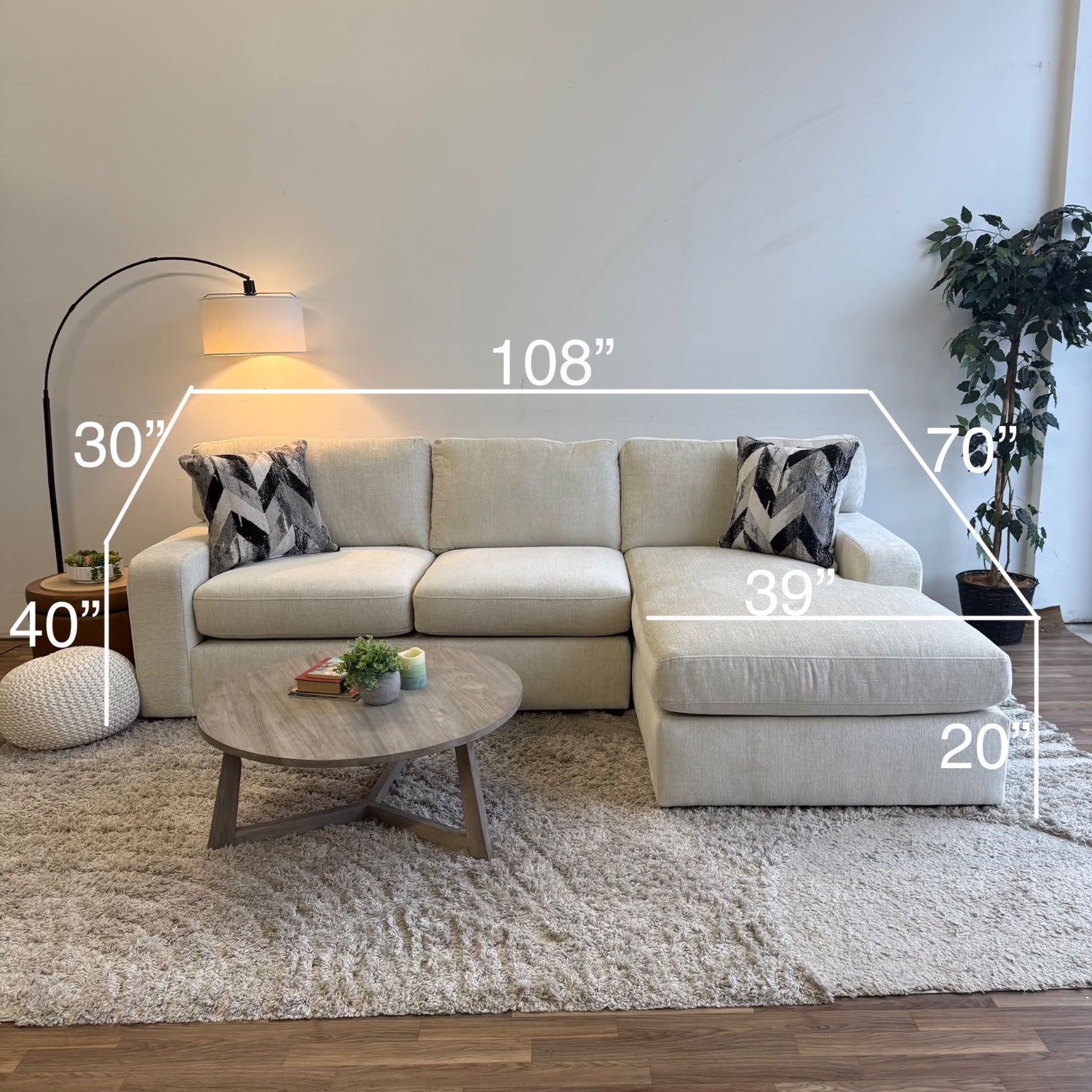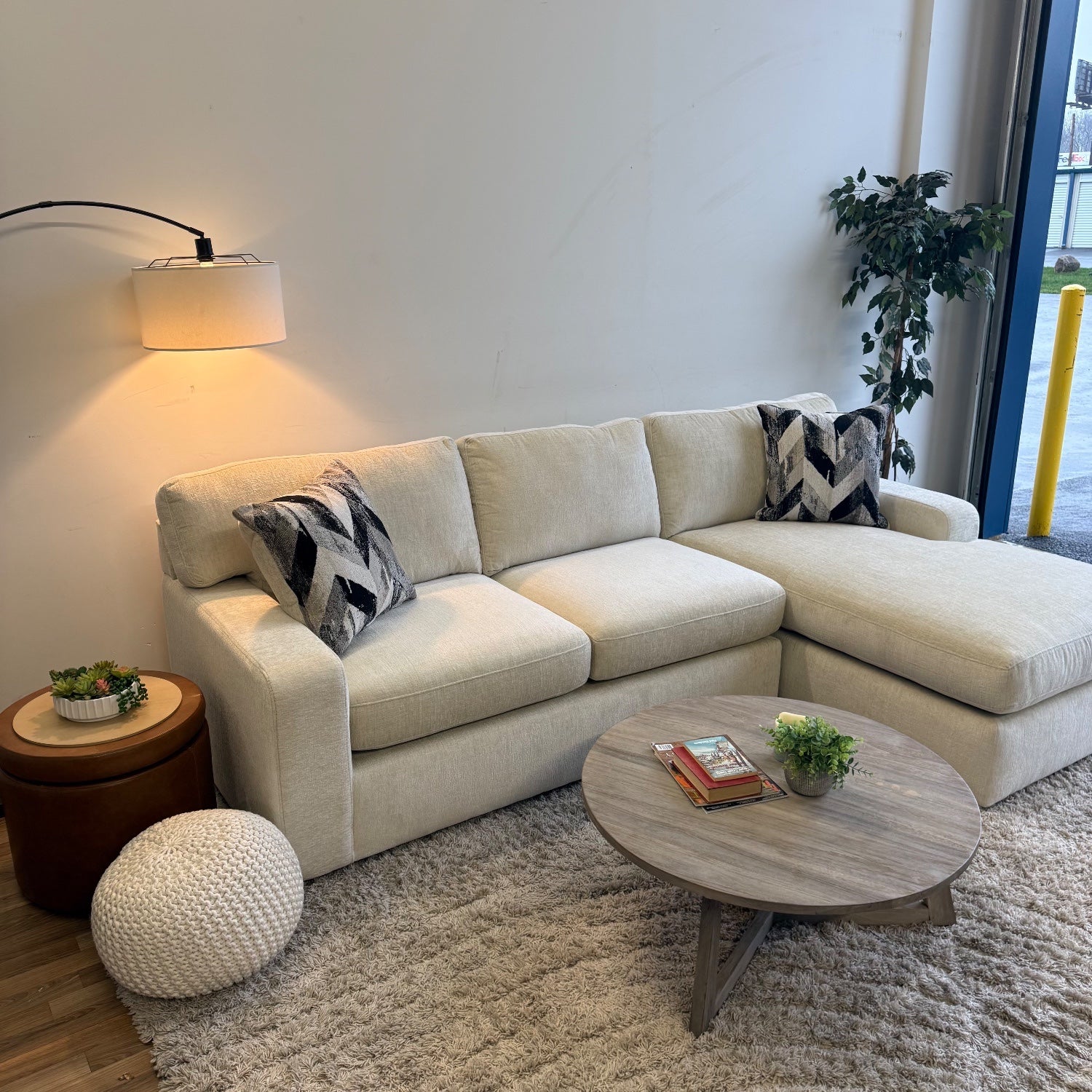 Rowan 2-piece Chaise Sectional in Cream Performance Chenille