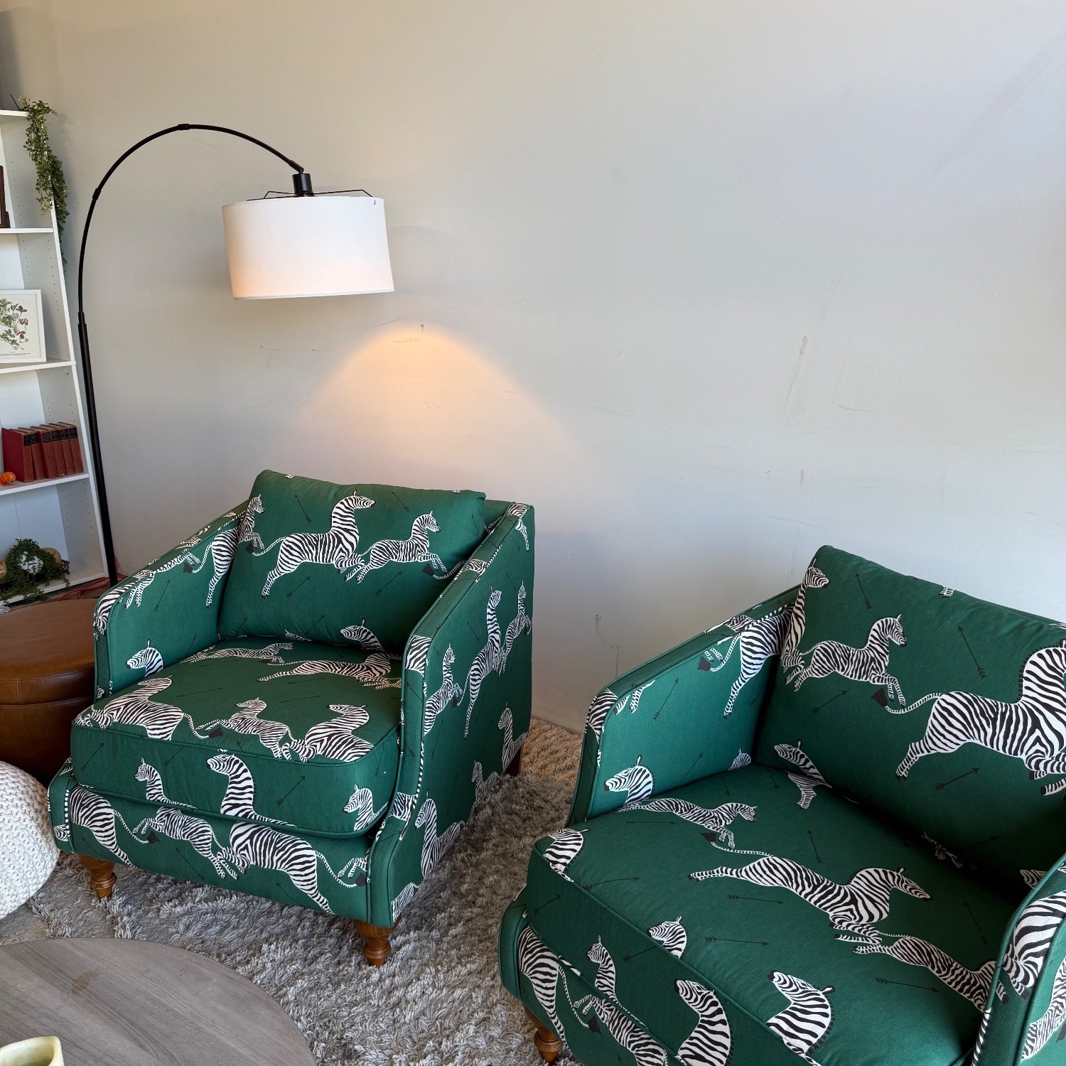 The Inside Pair of Slope Arm Chairs in Emerald Zebra